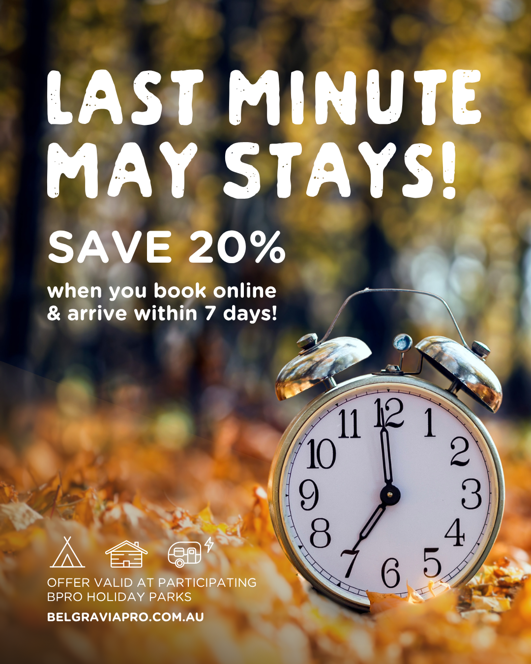Book online and arrive within 7 days at Forrest Holiday Park to enjoy a whopping 20% off your stay!