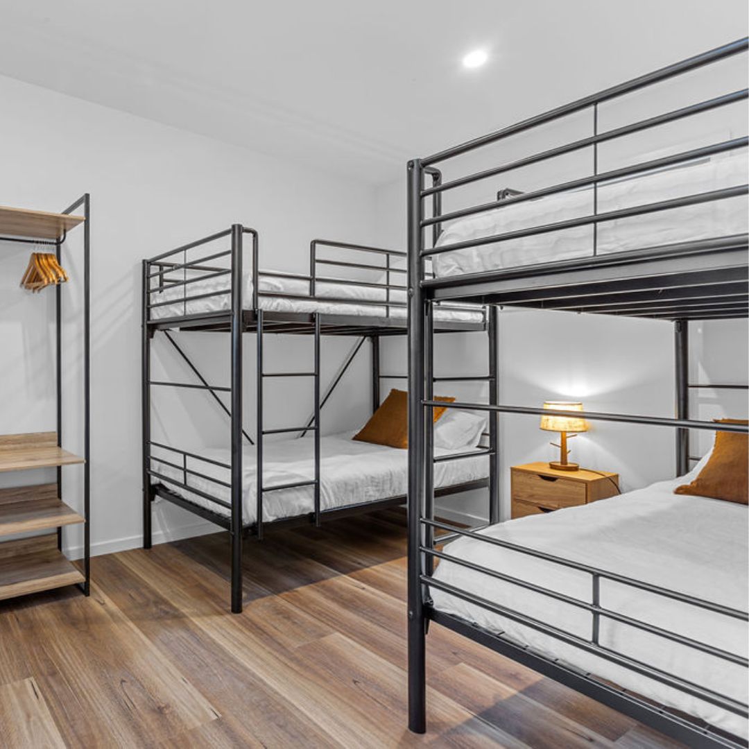 - Second bedroom with four bunk beds (top bunks have maximum weight rating of 100kg)