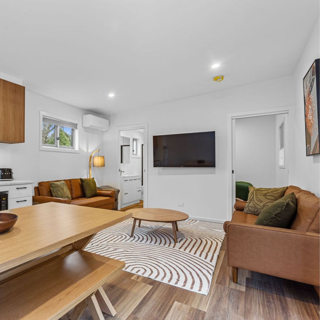 Whether you’re planning to explore the local mountain biking trails, looking for convenient short-term work accommodation or seeking an affordable comfortable base to explore the Otways and Great Ocean Road, our 2-Bedroom Family Cabin is the perfect choice.